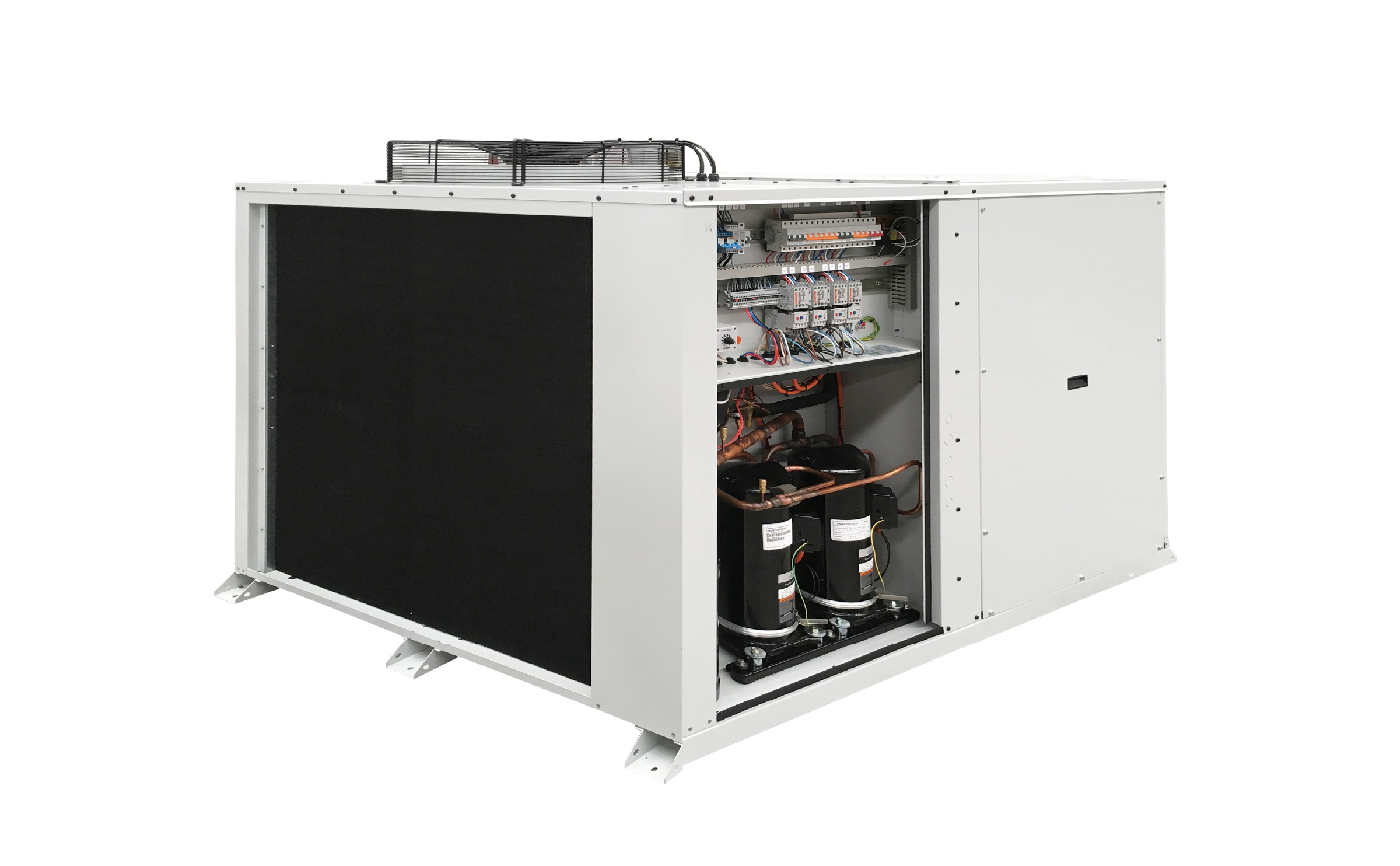 1. کمپرسور و کندانسور هوایی: وظیفه تولید سرمایش و دفع حرارت از طریق جریان هوا را بر عهده دارند.